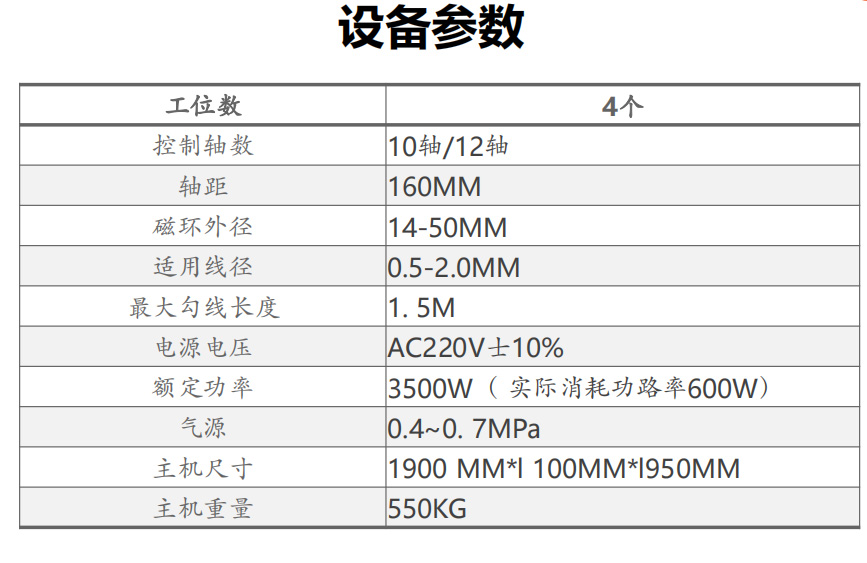 3.快速換型:旋轉(zhuǎn)盤(pán)根據(jù)磁環(huán)任意調(diào)節(jié),銅線規(guī)格任意更換,伺服電機(jī)數(shù)量多,機(jī)械位置手動(dòng)調(diào)整少